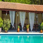 Rummen vetter mot trädgården, och har plattskärms-TV med satellitkanaler samt minibar. I badrummen finns en separat toalett och en dusch. Det finns också hårtorkar och badlakan.